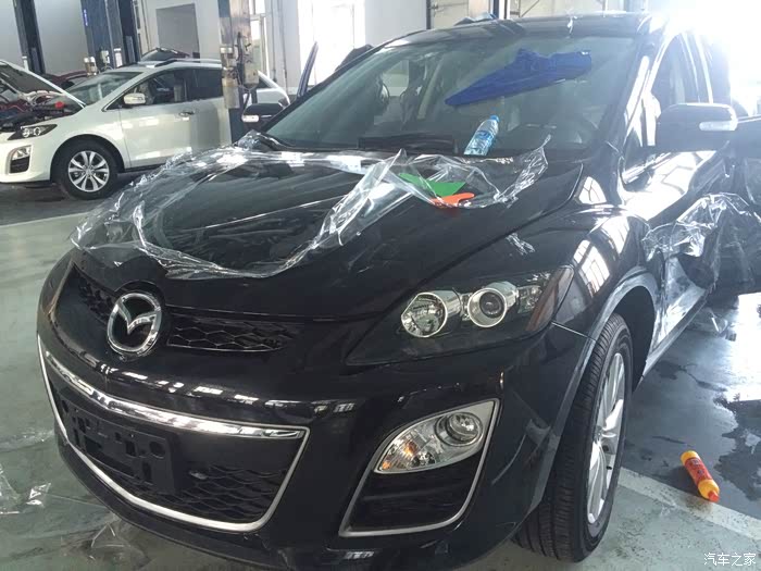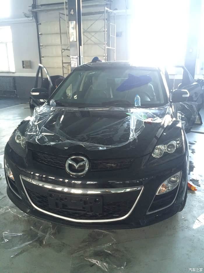 回正题说说我这台2.3T 运动版 CX-7吧!!贴膜是第3次4S店交钱并检查车的时候,确认没有问题的时候,看见旁边白色的CX-7正在贴,我媳妇立刻靠拢过去看是在干什么(她这之前不知道,还有全车贴膜这完应)...我也过去看了下,一看,膜贴的手艺还可以,贴的认真,顿时我也有点兴趣了,所以就询问负责我的销售...经过询问确定价格(价格保留,等大作业再说)...