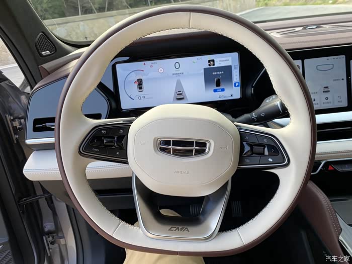 操控性能方面,星越L的车身较重,即使在高速行驶起来也是非常的稳健,一点不会觉得轻飘。良好的减震系统,前后的独立悬架在经过坎坷不平的路面时颠簸感也不是很强烈,表现的很稳重。方向盘转向精准,转动轻盈,操作虚位小,油门刹车踏板反应灵敏,车内的按键按压下去反应及时,有着良好的操控性。