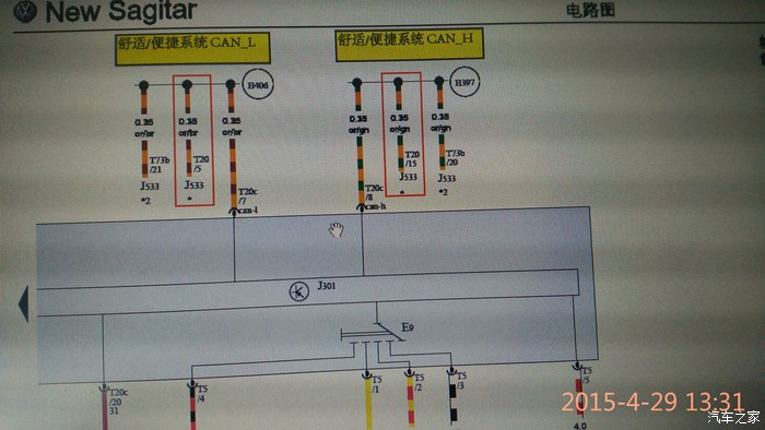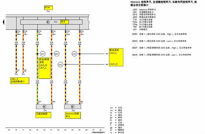 BCM J519集成 网关J533功能,空调控制电源J301连接在“舒适/便捷系统CAN”网络上;