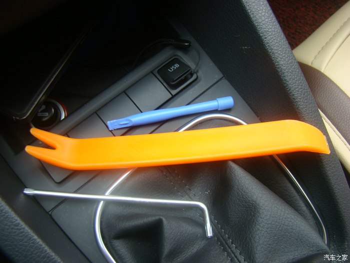 USB插座并把USB线束从储物盒下方缺口处放置到娱乐面板后方,以便于备用;