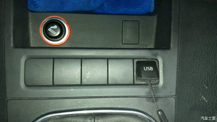 安装好USB插座及线束后图片(AUX平时不用,没有改装)
