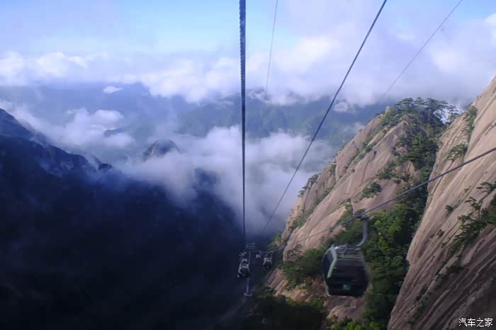 黄山索道,云雾缭绕,雄奇俊秀