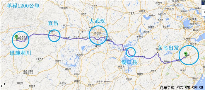 先上路线图:单程1200公里,往返共计3000公里以上。