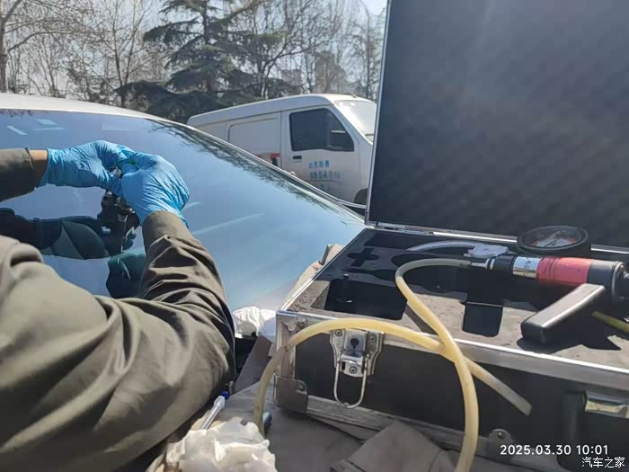 像挡风玻璃修复完之后,维修技师嘱咐2天内不要洗车,以防水渗透进去影响修复效果。