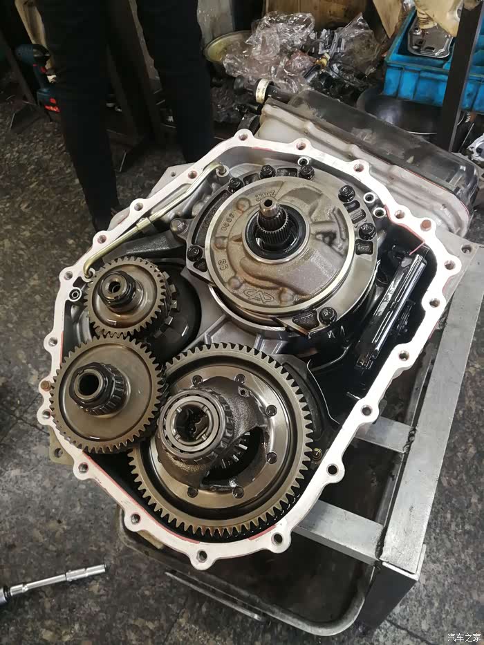 大约两个月前,变速箱开始嗡嗡响,行驶中转速越高越响,刹车减速过程中由于惯性作用声音也很明显,车完全停下后声音消失。最近声音逐渐变大,很吵,掩盖了CVT原有的口哨声,甚至掩盖了发动机声音和胎噪,担心继续开下去会导致变速箱内部压力缸和钢带永久性损坏报废。到4S店简单检测,要价6000至12000,还得送花都,这价格我接受不了,某宝全新的CVT总成不过9000元,于是找了一家本地路边CVT专修厂开箱修理,拆装变速箱、换轴承、加7升新油、换内部过滤网,一共1600元。