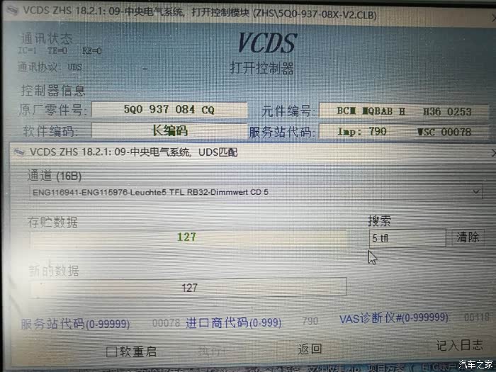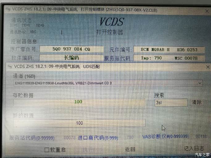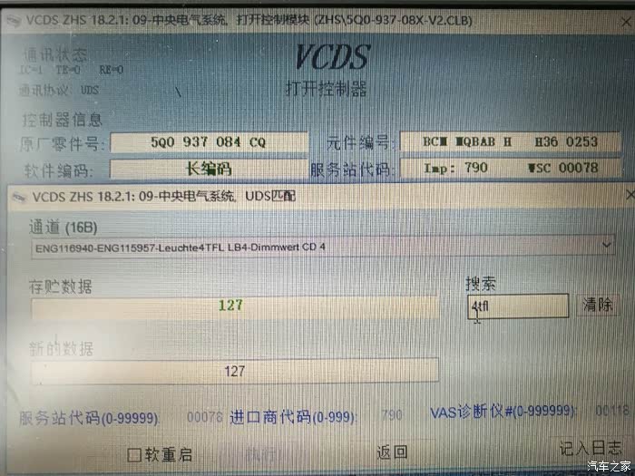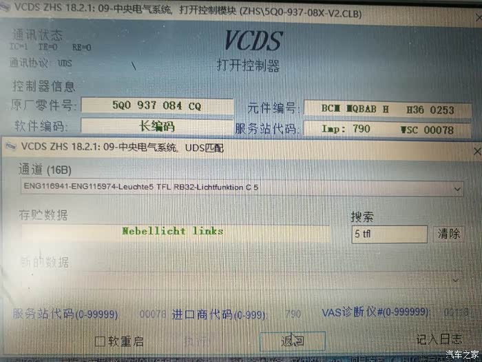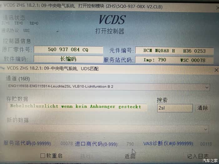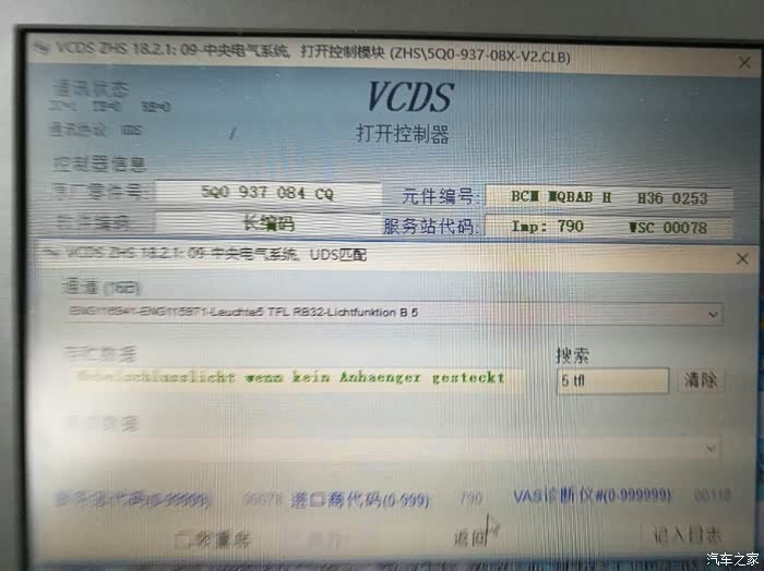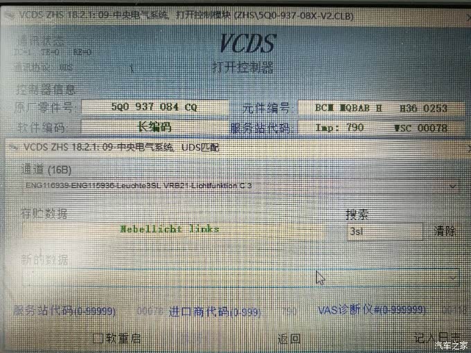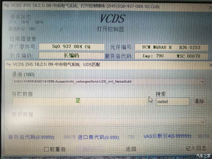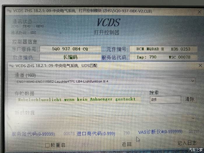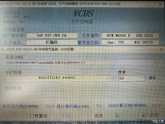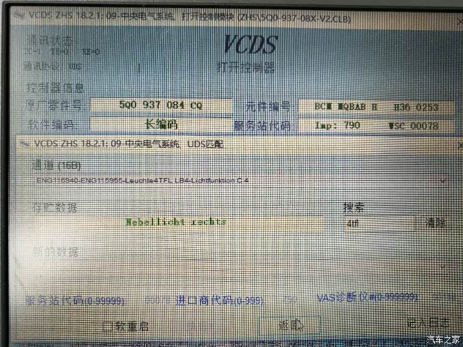 进入09中央电气模块,修改该通道值,翻译过来大意就是:外部前雾灯已安装。