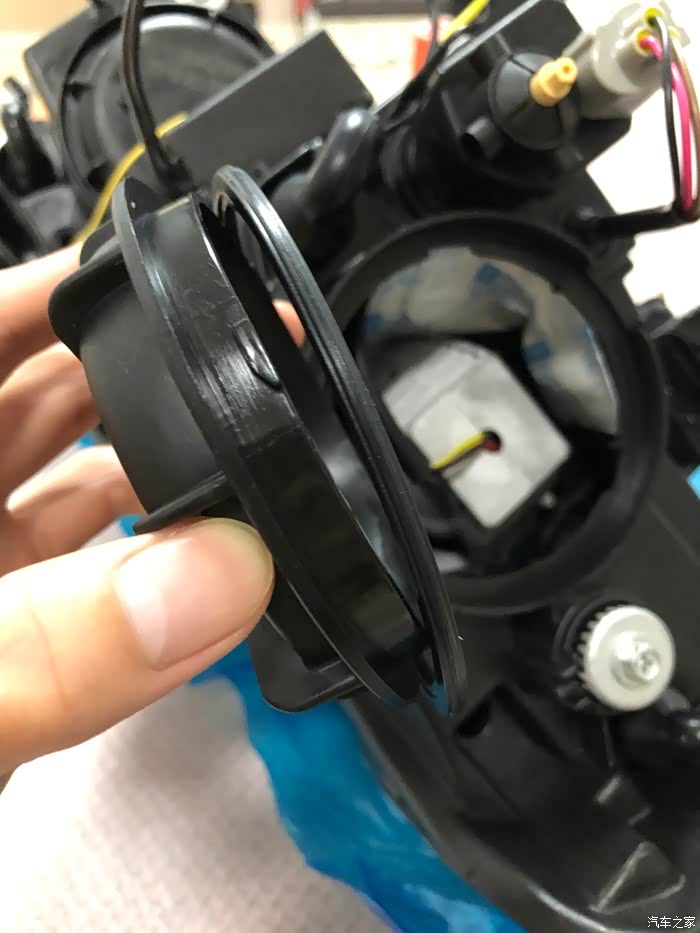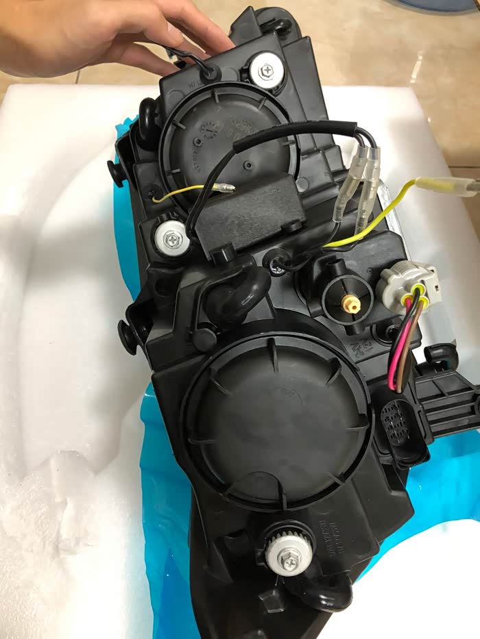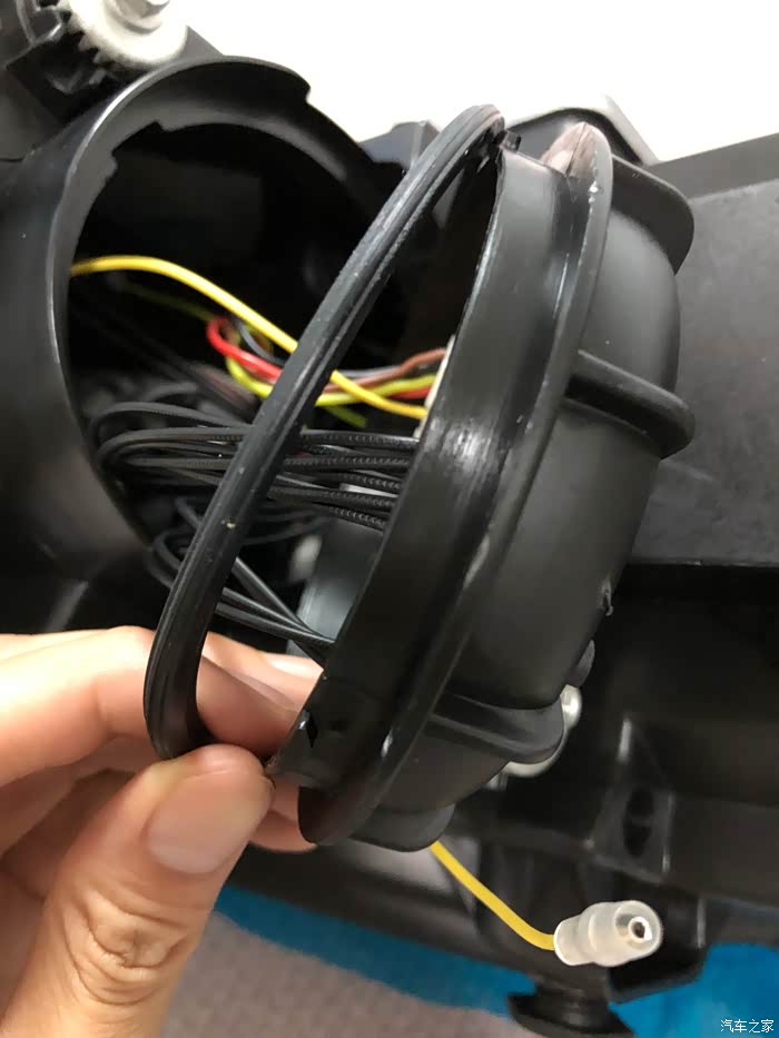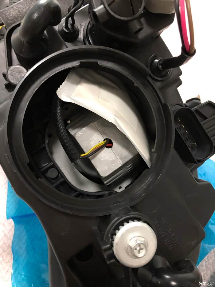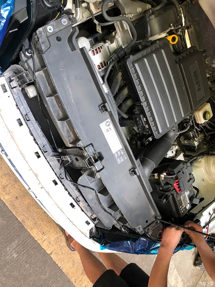2、个人感觉这老板做事有点粗心,在拆装大灯的时候,建议把整个前杠都拆开,因为大灯固定螺丝有一个在下面,不将整个前杠拆开的话并不方便拆卸与安装,这老板估计是想省事,结果浪费了更多的时间;