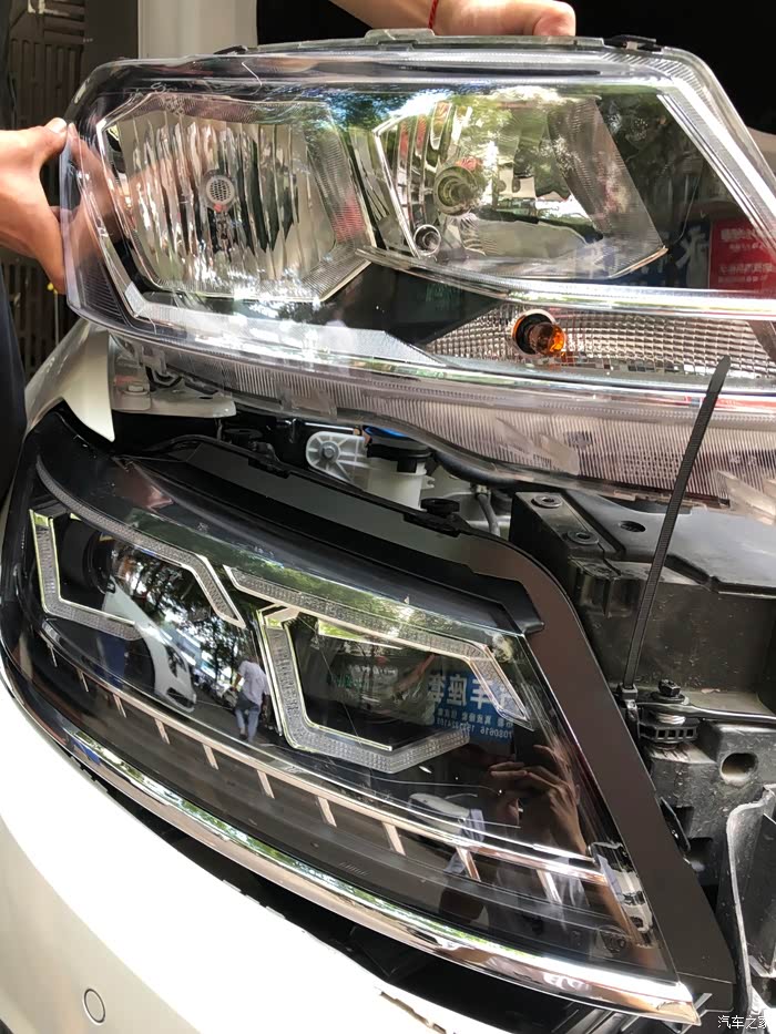 车子是朗逸1.6L手动舒适版,原车是蜡烛卤素灯,没有日行灯,早就对蜡烛灯不满意了,奈何囊中羞涩,前段时间将近光灯泡换成了原厂超白系列(4000K),亮度略有提升,但终究还是卤素灯,晚上遇到远光狗还是无可奈何