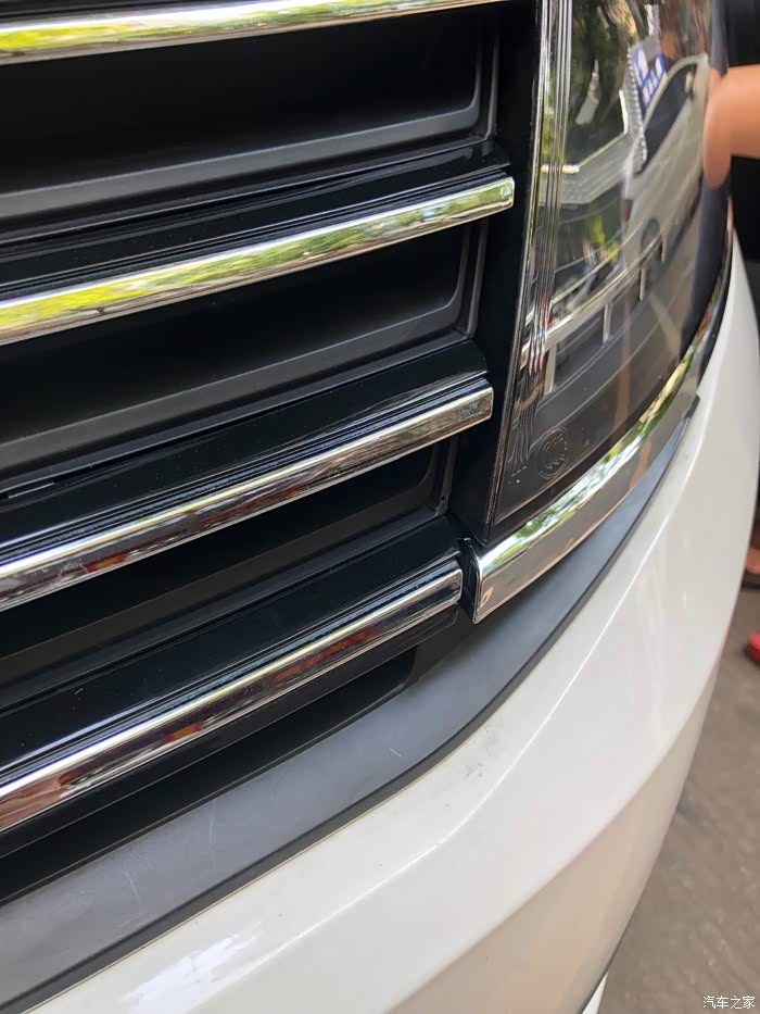 3、安装后缝隙较大,且下边的镀铬条较原车中网要高出不少,上边的玻璃灯罩与原车中网倒是蛮贴合的,建议厂家后期能对下边镀铬条这个地方进行调整。
