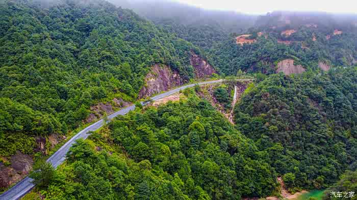 和广信区相连的便是铅山县,铅山县也是北武夷山的核心管辖区域,这里的山峰更加高耸,山路自然更为崎岖。尤其是进入铅山县石塘镇的道路,在山崖边修建,用无人机的视角可以看到,还是非常险峻的。不过整体的路况还算不错,轿车也可以轻松驾驭。
