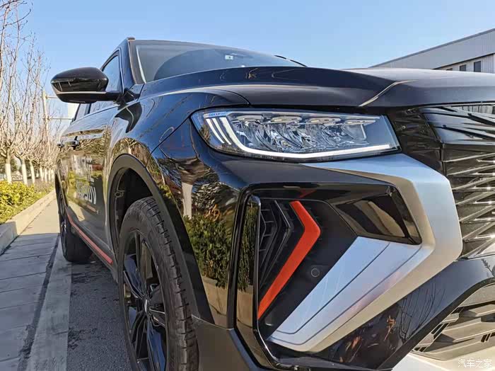 全车最个性的当属前脸部设计,风暴战甲前脸的前格栅及进气口,大灯共同组成的前脸,融合了古代铠甲和现代战甲的元素。格栅设计如同能量向着中间汇聚,再向四处爆发扩散,整体设计比较前卫。刀锋般的进气口装饰、橙色的箭羽饰条,起到画龙点睛的效果,让车辆充满了活力。