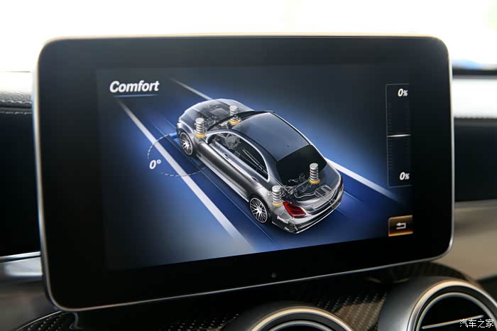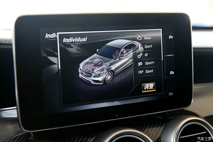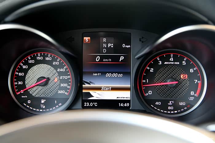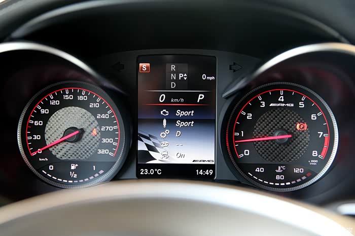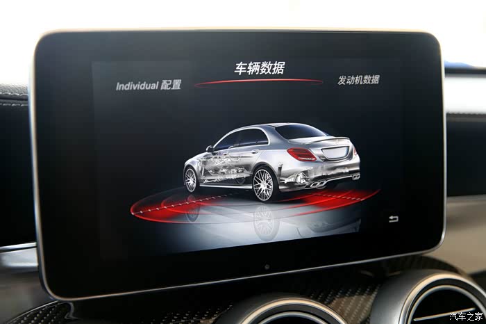 这是系统菜单,C63S-model的仪表盘算是漂亮的,只是中间的碳纤维有人喜欢,有人不喜欢。我更希望AMG可以发光,好看的那种。中间的液晶显示屏可以显示多项数据和在菜单直接切换选择。