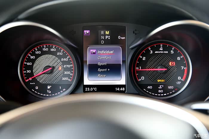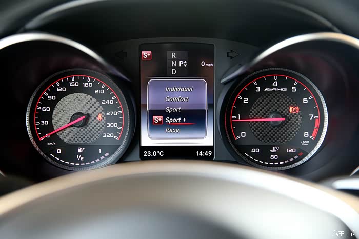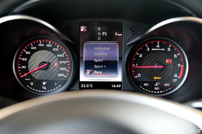 RACE模式要说一下,弹射应该在这个模式开启,另外,可以留意到仪表盘上显示了SPORT,那不是运动模式,而是指ESP防滑已经半关,允许一定程度的侧滑,类似M上面的MDM模式。也可以理解为放纵模式,电子系统介入会慢很多,但依然介入。