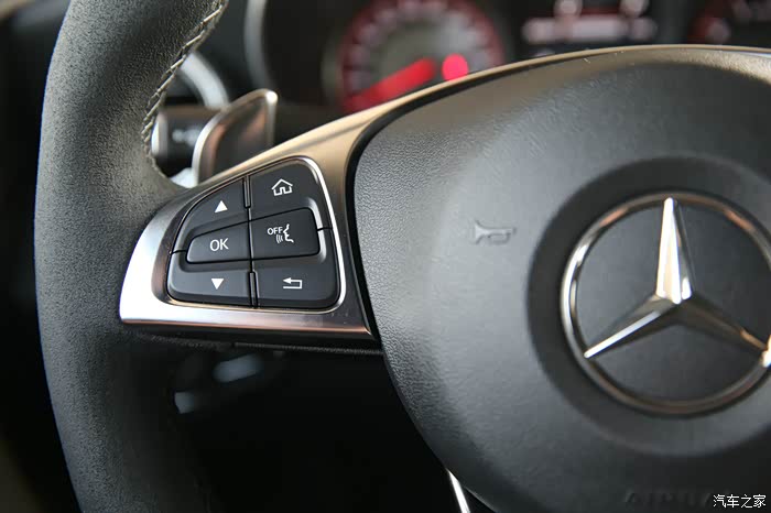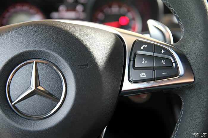 AMG三幅多功能式方向盘手感很不错,三点和九点位置都用了Alcantara材质,我是挺羡慕的,抛开手感不说,比起M的“丁字裤”方向盘我更喜欢这个。