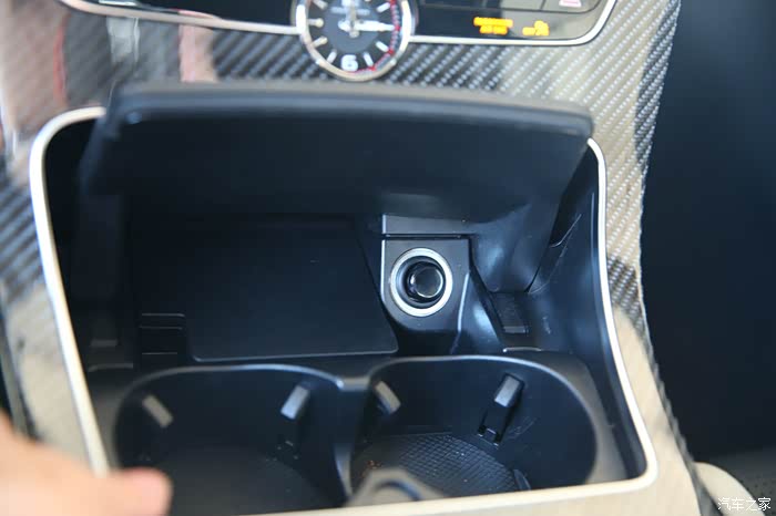 硕大的AMG下面是烟灰缸和杯架,储物格。但是让我意想不到的是这一块盖板的重量,应该不是重量的问题,二是旋轴弹簧的阻尼没设好,导致盖板轻飘飘的,也是像上面提到的黑色按钮那样略显出廉价感。。。盖板的背部边沿没有打磨处理,塑料直接裸露,而这个位置不是完全不可触碰的,所以无意碰到会觉得有点刮手。。。完全可以做得更好的。。。