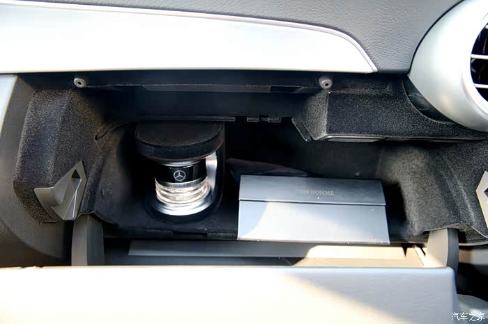 手套箱因为被车载香薰系统占了部分空间,所以放下一个眼镜盒就差不多满了。