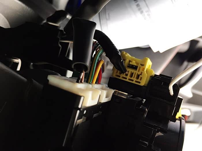 接满后的D51接口。只改方控的话不用接满,只多了GND、SW1、SW2、L1+2。这时候的我避免后期要是再改东西还要再拆方向盘,就全接满了。