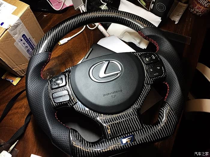 挑选纠结的过程就不说了,后面选择了雷克萨斯RCF的方向盘改碳纤,理由是帅!手感改碳后也是很好没有失望,尺寸同样也是36.5(雷车的方向盘都偏大,RCF和IS最小36.5mm,CT是37mm,GS好像更大)、按键数量多还有电话功能哈哈、定速巡航通用、还有一个更重要的原因,也是最重要的倾向原因:气囊!