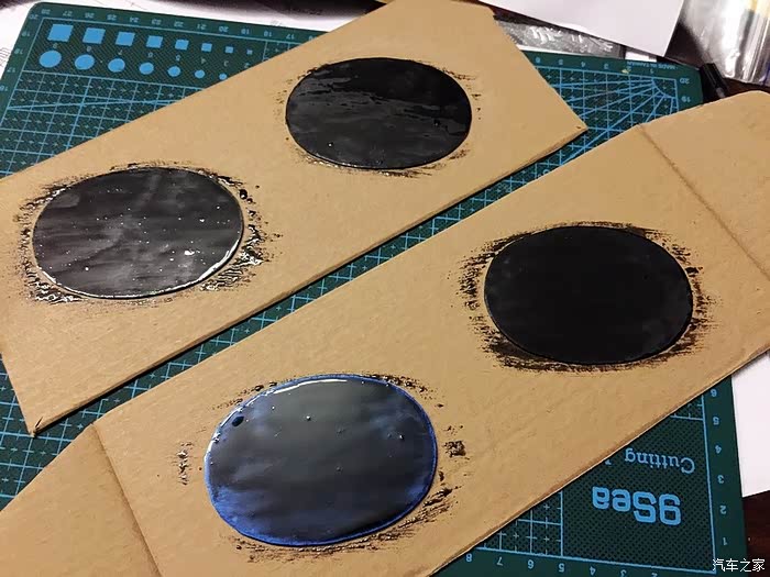 切割好多余的边,贴上金属logo再加第二遍环氧树脂