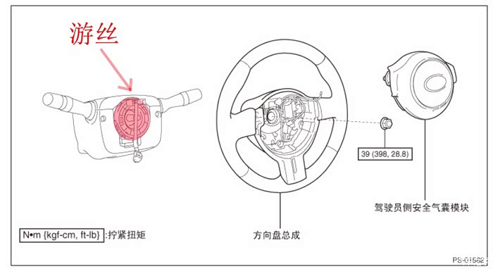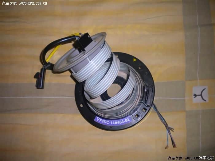 原理1-游丝:大家都知道方向盘是不断转动的,而方向盘上的按键又要和车身上的各个系统相连,中间不能直接用线束链接,因为这样持续的转动总会让线束疲劳断裂。所以连接方向盘上按键和车身通讯的是游丝(部分维修手册上称此为“盘簧式连接器”、“螺旋电缆连接器”。