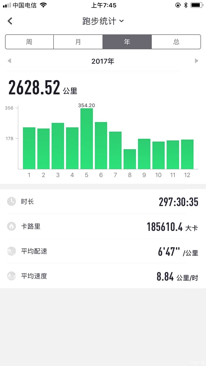 2017年跑了2个全程马拉松、20个半程马拉松,跑步2628.52公里。
