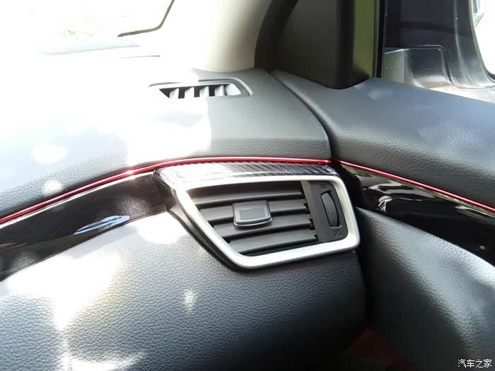 前中空调出风口的小小点缀,碳纤维膜,亲自动手裁剪的,个人感觉难度很大,辛好效果和仪表盘的装饰先看起来比较搭配