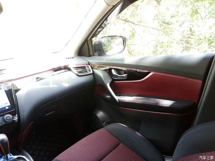 右前门板贴了酒红色皮,(应该说是塑胶)