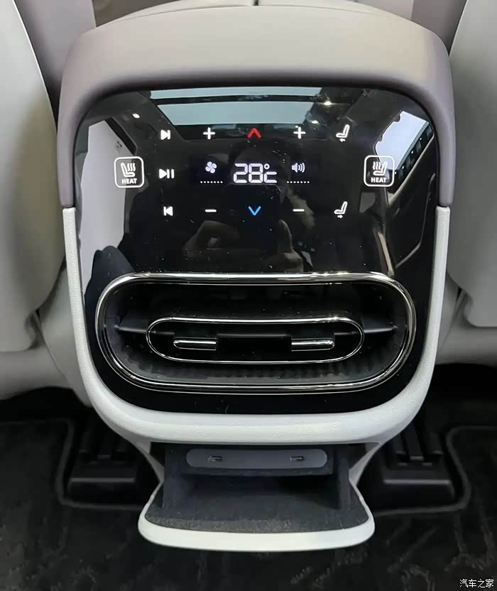 出风口升级为液晶控制面板,不仅可以控制后排空调,还可控制后排座椅加热等功能