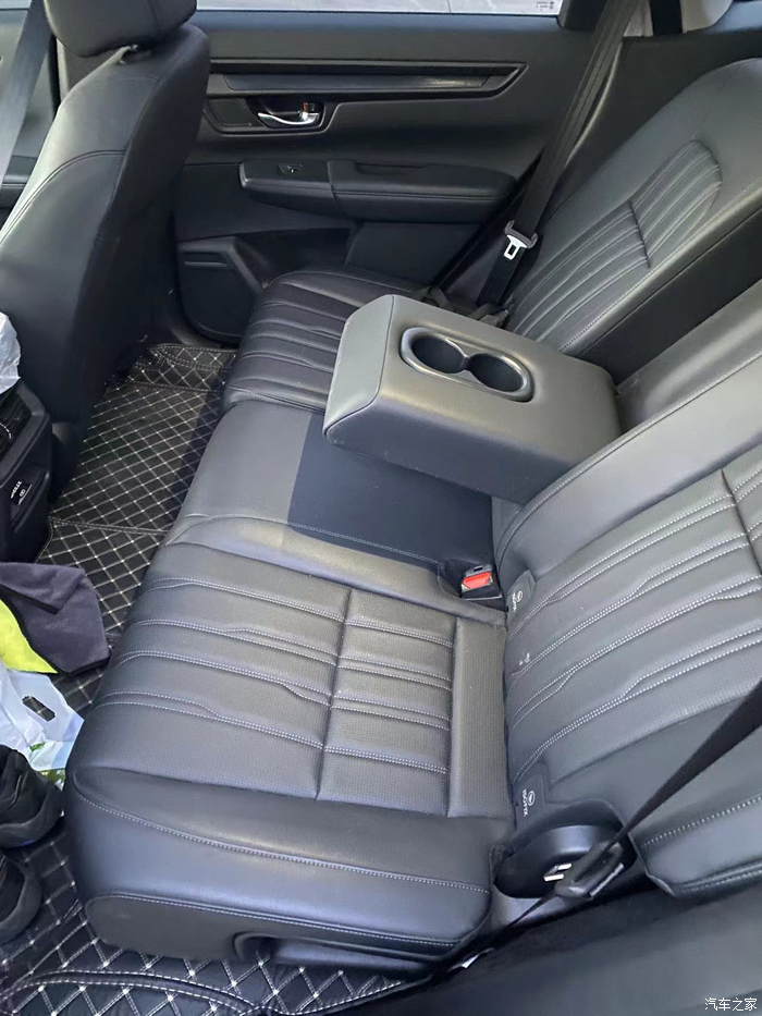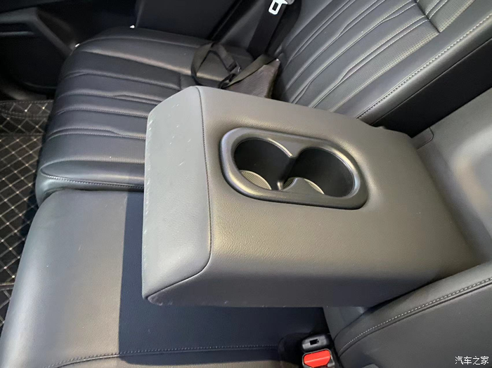 后排还有水杯架,后排空间坐下之后还有2拳的距离,三个人坐在后排也不会拥挤,宽度足够适应。而且座椅设计也非常舒服,坐下去软软的。
