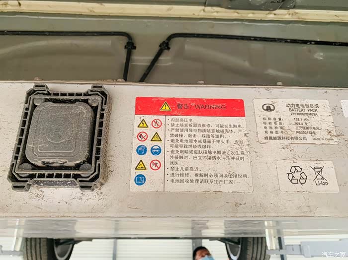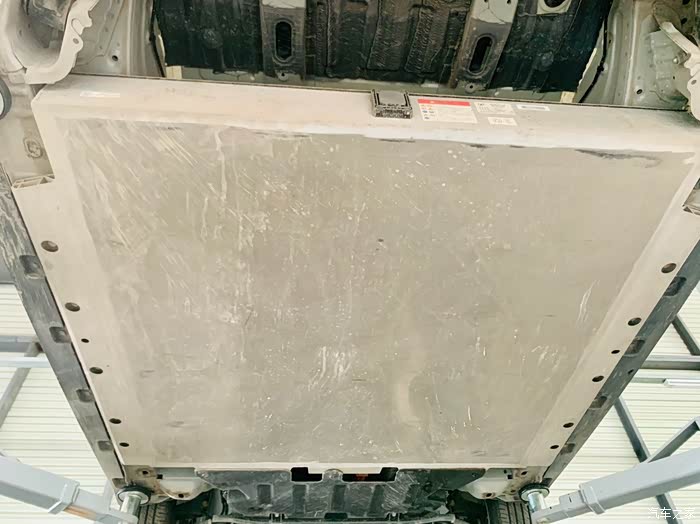 接下来,就是重头戏了,好猫作为一台新能源汽车,想必大家最关心,也是最好奇的就是它的电池了,那么好猫的电池被安放在了底盘最底部,也是众所周知的。但是,它到底在底盘是怎么被保护起来的,今天,我就带大家一起来一探究竟。可以从这上面三张图片上看到,电池很大,几乎占了整个车身的,我买的这款维纳斯,原先是配的磷酸铁锂电池,后来,4s店销售联系到我,厂家出了三元锂版本的车型,和磷酸铁锂电池一样的续航能力,都是401公里,我果断就换成了三元锂电池,因为我知道,三元锂电池续航表现力尤其是在冬季,要远远优胜于磷酸铁锂电池,我更看重续航能力这一块,所以,大家也可以从图片上看到,每一块电池上都会贴有标签。当然了,电池都是禁止碰撞的,这也是电车的小缺陷之一,不过,驾驶车辆,必须要谨慎小心,正确驾驶车辆是基本的安全意识。除此之外,大家也可以从图片上看到,电池因为处于汽车最底部,难免会有小碰擦,造成一些划痕,这一次,我也仔细看了一下我的电池保护板,上面划痕也不少,售后工作人员告诉我,这些划痕很正常,不影响电池寿命安全,这块铁板其实很厚,对电池就是起到保护作用的。
