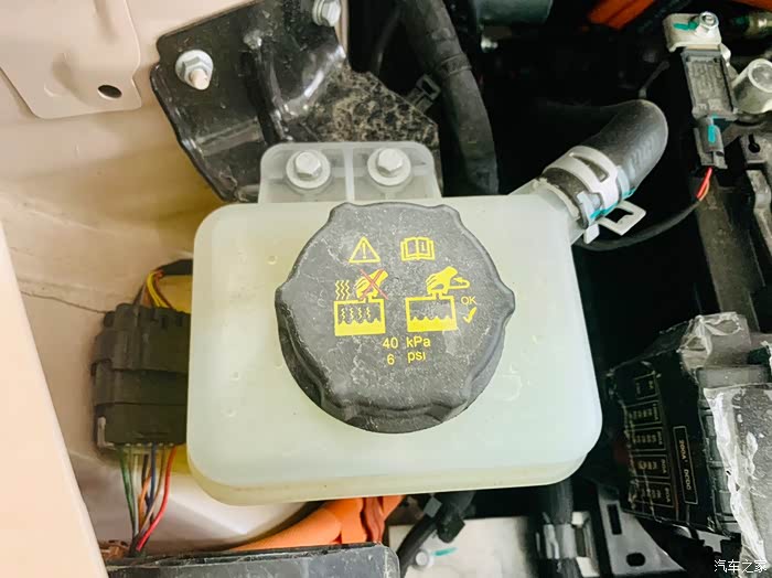 我个人尤其注意了一下这几个有盖子的容器装置,工作人员简单介绍了一下,这几个装置有几个应该是装防冻液之类的,他们只是和我强调了一下,自己装玻璃水的时候,千万不要装错,并且和我讲解了一下加玻璃水的注意事项。