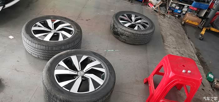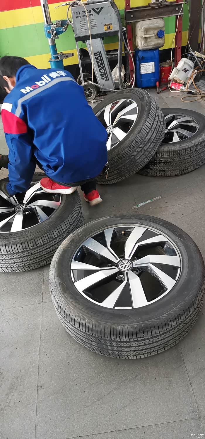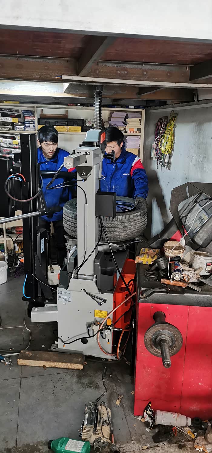 放下新轮胎 到附近的汽修店 进行更换, 谈好了价格 ,拆旧轮胎 更换新轮胎 并做动平衡 50元一个,总共200元。