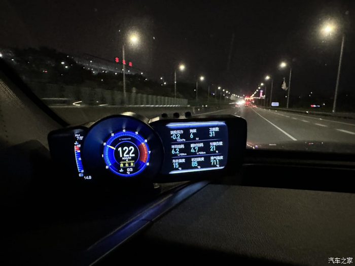 松开油门让车辆滑行,发动机转速为零。一段距离后车速降到79km/h,排气温度下降到652度,降了101度。这是在车外温度13-15度的环境下实测的数据,如果是零下十几二十度的温度,排气温度降低的幅度肯定会更大。