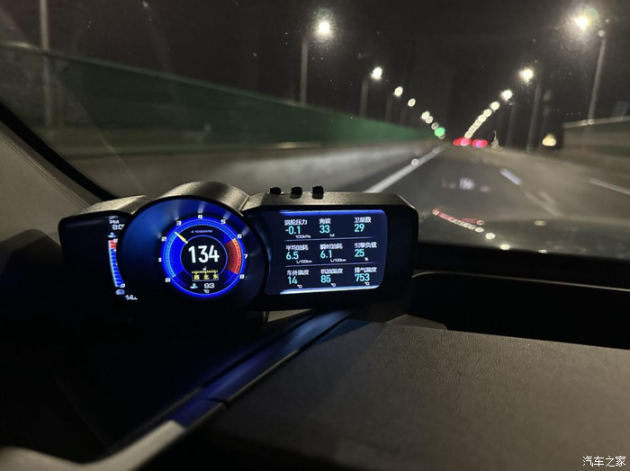 继续加速到速度134km/h后巡航,发动机转速2500rpm,排气温度753度。