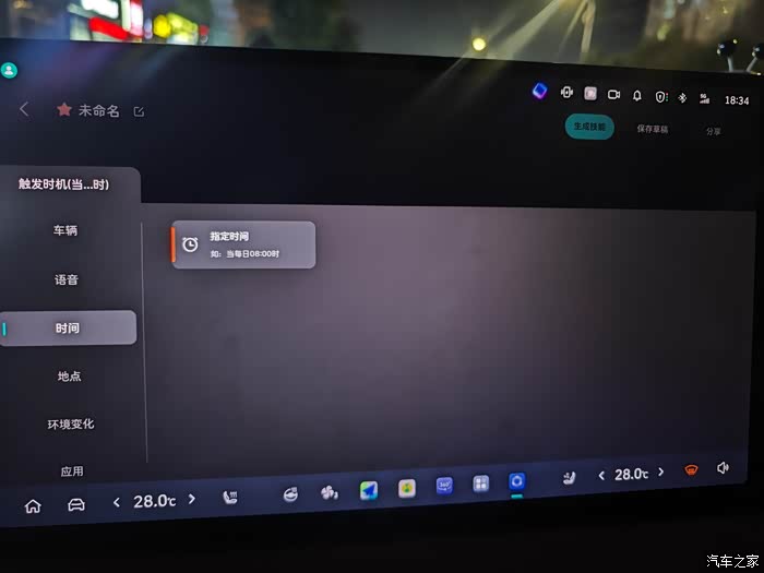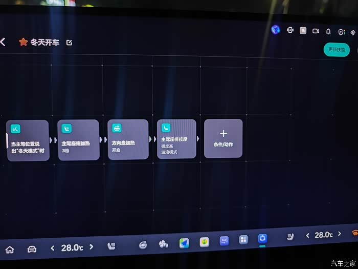 总之技能制造局这个功能的可玩性很高,比如这次我带着我一个朋友出去,我设置了一下技能制造,我说小魏同学把我bro服务好,语音播报说已经把彭于晏的座椅加热座椅按摩打开了。我朋友感觉整挺好,挺神奇的功能。
