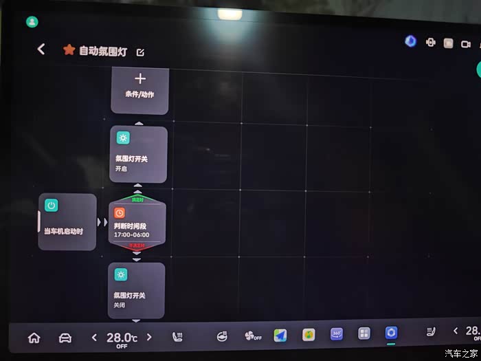 我这个技能制造局还有很多待开发的点,就是它的判断条件,它不能加座椅是否有人、车灯是否开启、行驶多少公里等。比如我想添加一些场景: