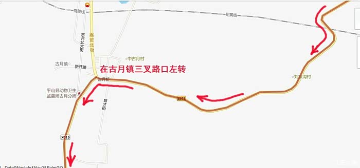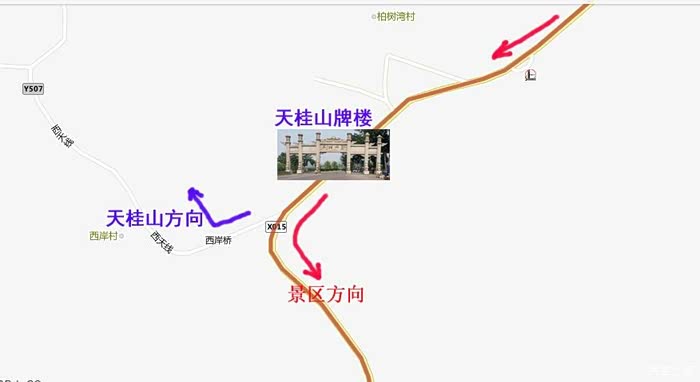 过牌楼是个三叉路口,左转!