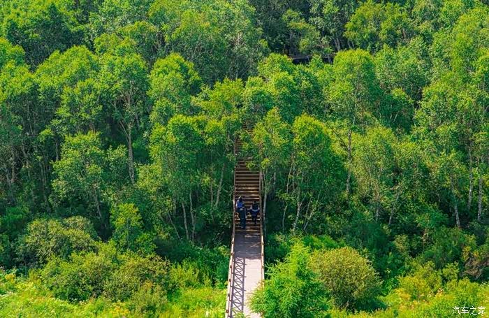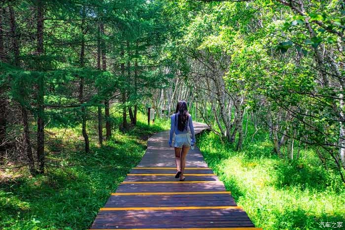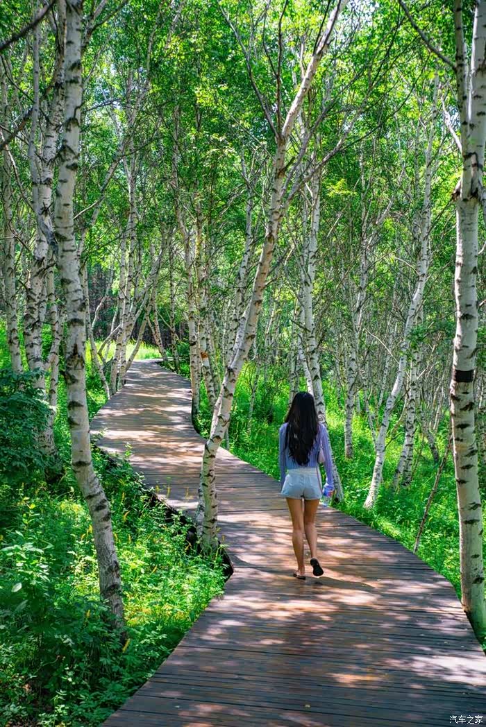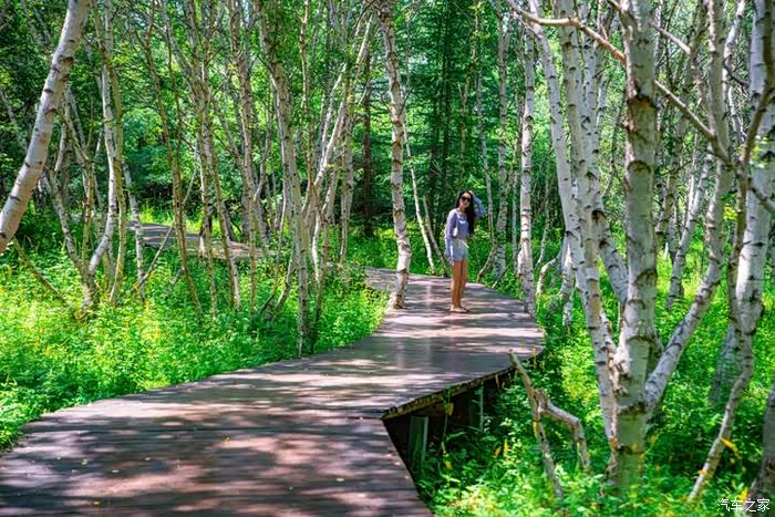 这一段木栈道被茂盛的白桦林所覆盖,它有一个很美的名字叫做——白桦映日。木栈道贯穿其中,一路光影斑驳,中途有不少的休息亭和观景台,可以在这里稍作休息,耀眼的阳光透过随风摇曳的白桦树,弱化了它的热烈,温暖的打在脸上,加 上林 间穿梭的微风,仿佛梦境。