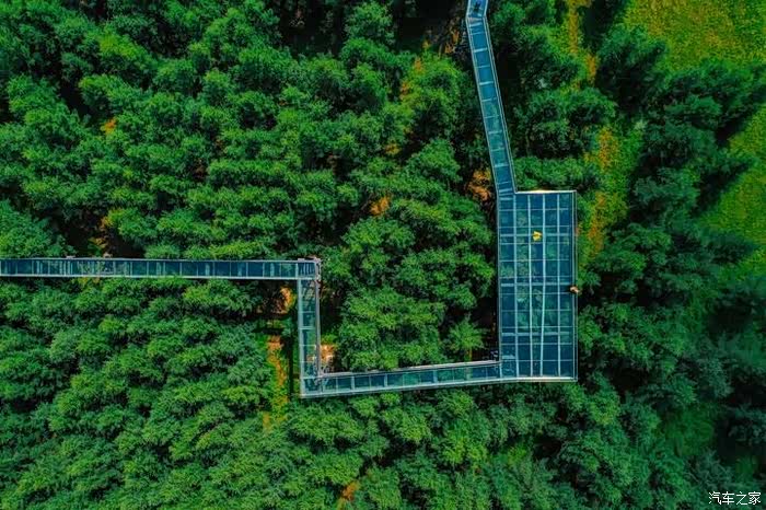 云亭栈道的对面是一段刺激的玻璃空中走廊,有一个有趣的名字——“树梢上的脚步”。