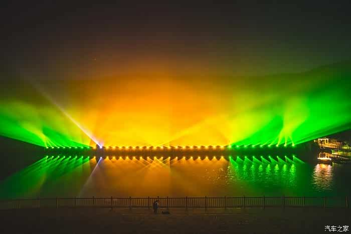 最后的重头戏是天镜湖的梦幻音乐灯光秀,巨大的木质看台,超大视野,持续40分钟左右的音乐灯光秀极具震撼。梦幻般的感觉不是说说而已,真的是身临其境的满足感。每一首音 乐都 在寂静的山谷里回荡,每一束光束都在黑夜里照耀出了不一样的色彩,让你分不清到底是光随着音乐在动,还是音乐附和着灯光。