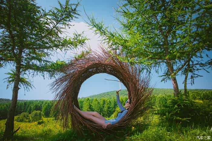 走到尽头是一片天然的花海密林,里面有适合打卡拍照的网红鸟巢,在草原上拍摄鸟巢的打卡照片还是非常应景的,周围就有悦耳的鸟叫声回荡。