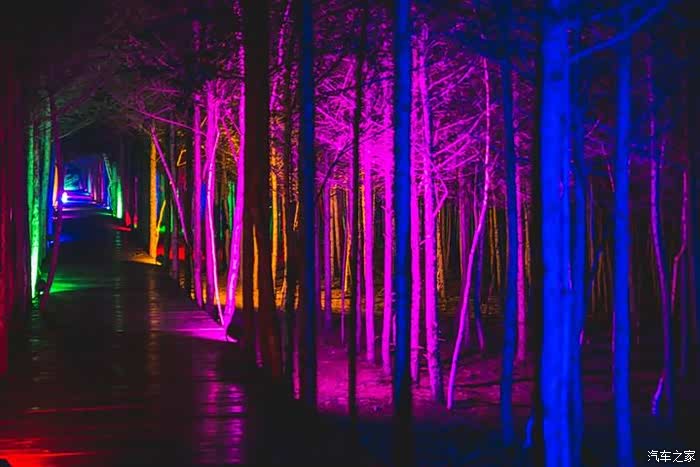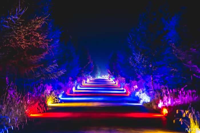 走上七彩大道,多种不同色彩的灯光闪烁,打造出了一片星空、一滩水韵、一抹花境等奇妙的景象,就像镜花水月般美轮美奂。