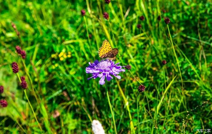 山顶有风,望向来时的路,蜿蜒在山脊,两边都是翠绿的草甸,夹杂了数不清颜色的鲜花,真的就像一条彩色的天路延伸向无尽的天边。广阔的视野,扫遍眼睛能看到的一切,最美的草原风光就是如此吧,旅行的意义简单,风吹的山花烂漫,时光被温柔以待。