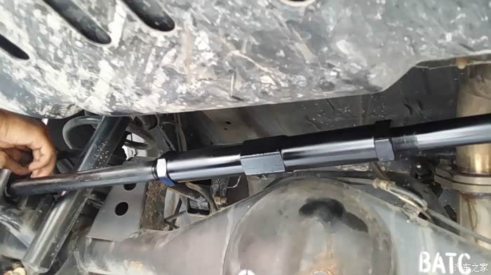 正常升高以后,原车的平衡杆长度不够,我选择加工成可调节式平衡杆,这里建议大家一定要做加长,平衡杆如果短的话,会造成车辆跑偏。