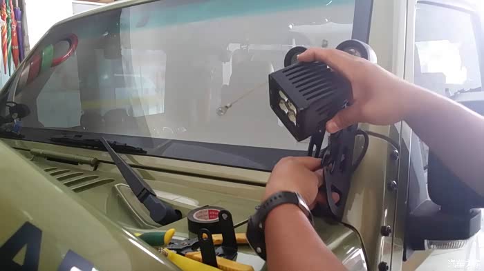 顺便改装了一下钱射灯,去掉原来的长条LED灯(风燥太大),换装A柱支架加装小的LED等作为辅助灯。