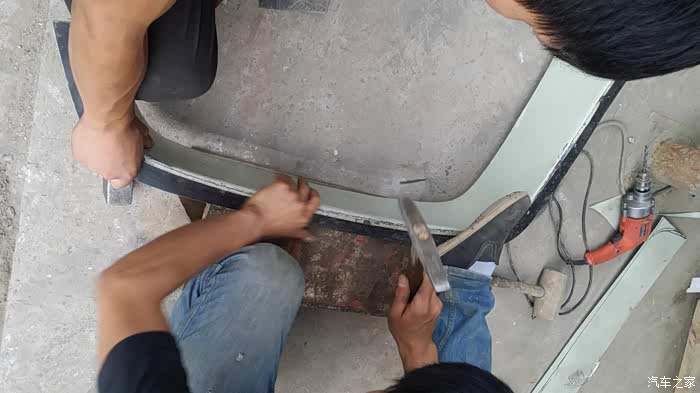 改装前减震,首先切除原来的减震支架。