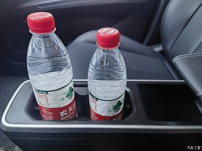 采用怀档设计,提高中央扶手箱的储物空间!可以存放瓶装水。至于下面的储物空间就略显鸡肋,不太容易放,取!