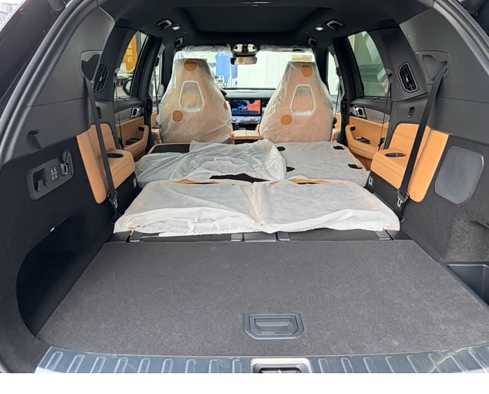 后排全部放倒,形成纯平的空间,一米五的大床房呀!可惜不是混动,无法不启动发动机来吹空调。