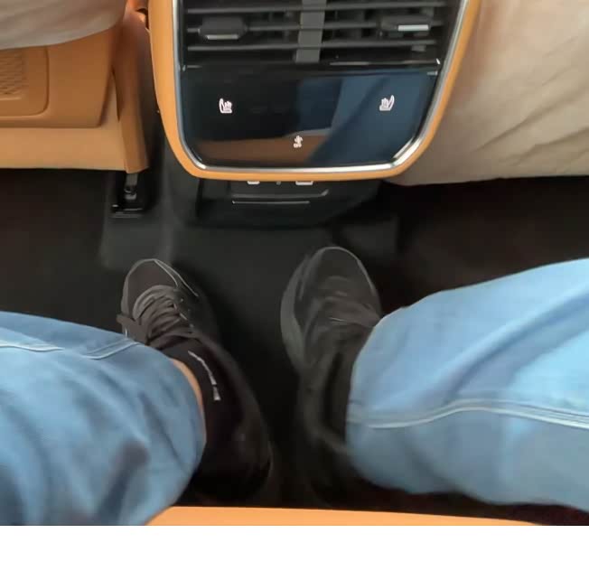 燃油版第二排中间是有凸起的(混动版是纯平的)但是好在这个凸起够宽够长,可以放下我42码的脚,所以中间位置坐人脚不至于叉到旁边去。