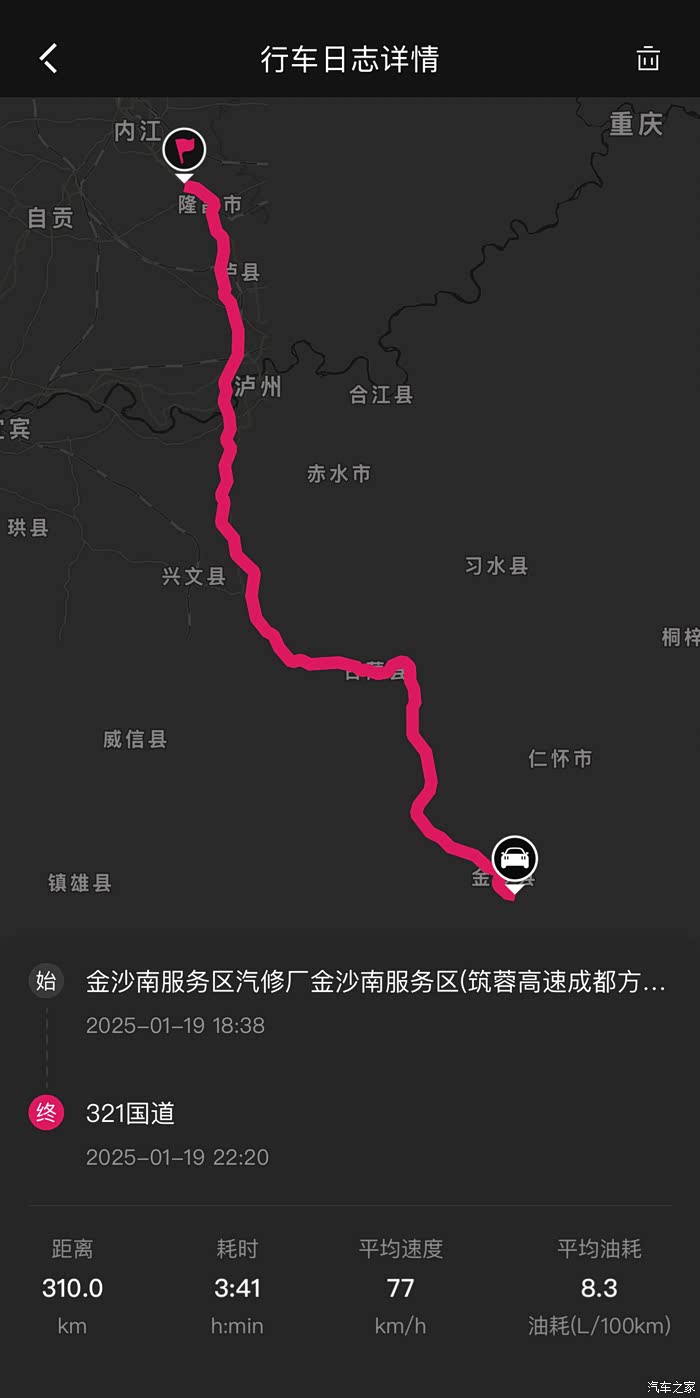 这是一千公里高速最后一段310公里app显示的油耗,降到了8.3,当然,这个只是车机显示的油耗,实际油耗应该要多一点。
